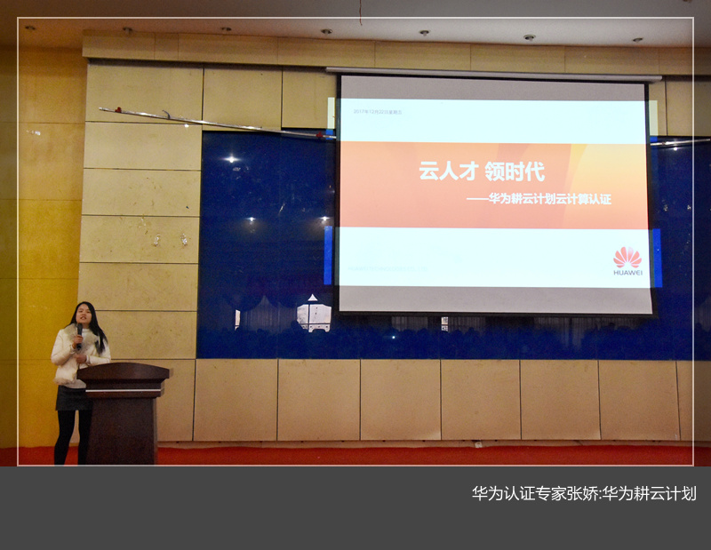 张娇老师以ICT人才标准及就业分析为主题,以权威数据对当前就业形势作了分析,指出ICT行业的发展潜力巨大,相关专业的就业情况良好。并介绍了华为数通R&S和华为云计算解决方案及认证架构体系。鼓励同学们在本专业基础上丰富自己的理论基础、增强动手实践能力、锻炼自己的表达沟通能力,成长为一个具有高素质ICT的复合型人才。