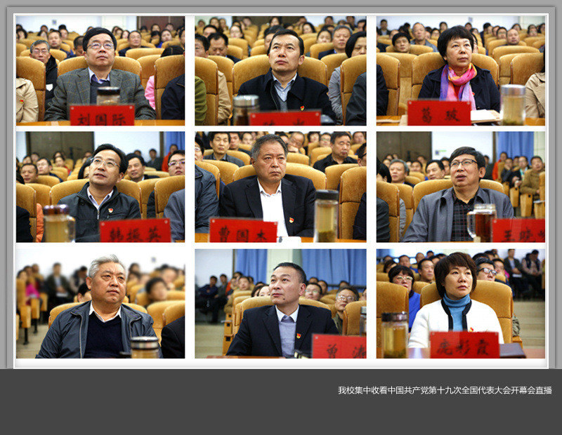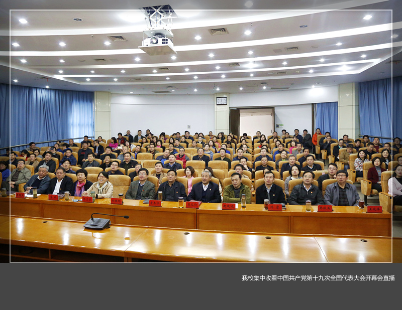 10月18日上午9时,举世瞩目的中国共产党第十九次全国代表大会在北京开幕,我校组织师生集中收看了开幕会盛况直播。学校领导苟义伦、刘国际、陈岩、葛玻、韩振英、曹国杰、王晓峰、张文选、曾涛、庞彩霞,河南省审计厅驻我校审计组组长、省审计厅副巡视员唐军平,副组长、省审计厅社保处副处长赵晓龙、杨兰英及我校机关全体人员在王城校区办公楼报告厅共同观看了直播。
