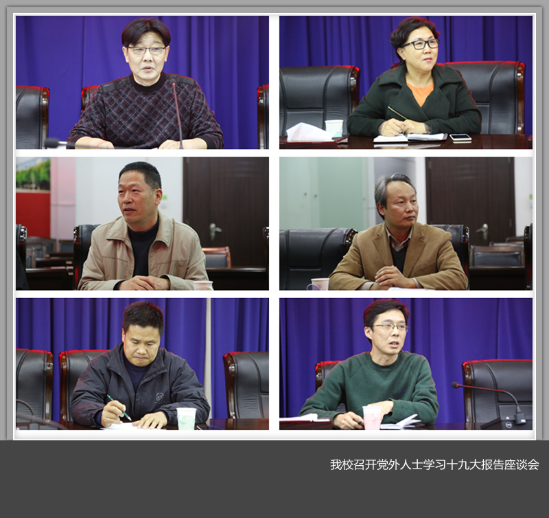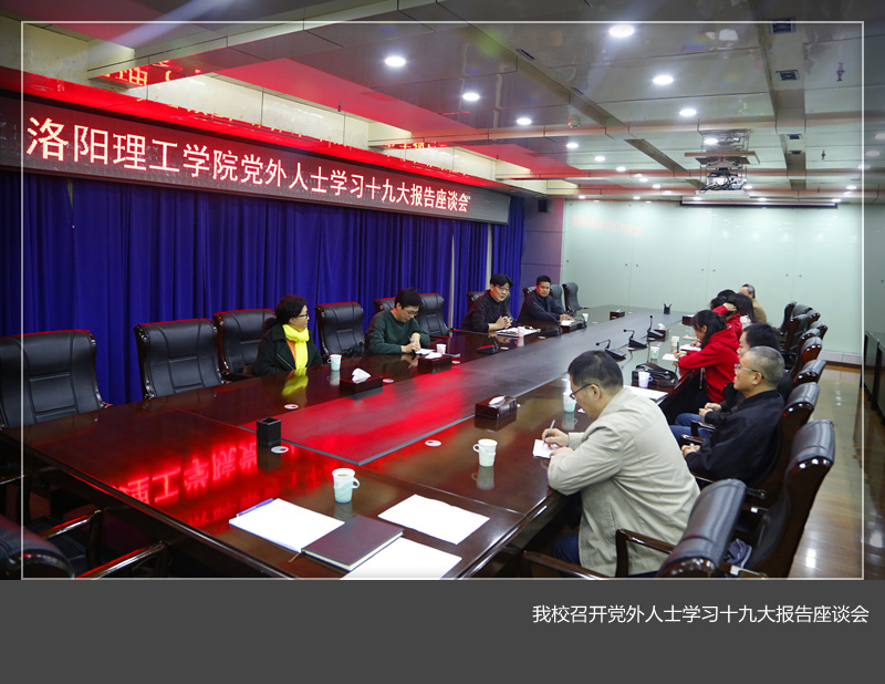 10月25日下午,我校在王城校区办公楼116会议室召开了党外人士学习十九大报告座谈会。党委统战部负责人和我校各民主党派代表、无党派人士代表以及洛阳市统战理论研究中心有关同志参加了本次座谈会。