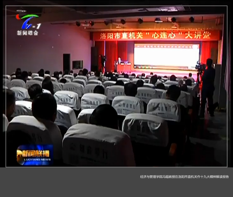 10月26日上午,我校经济与管理学院常务副院长冯超教授应邀在洛阳市直机关“心连心”大讲堂,为100多名洛阳市直机关工委公务员和安乐镇社区党员做了题为“十九大精神解读——现代化经济体系与洛阳发展机遇”的报告。