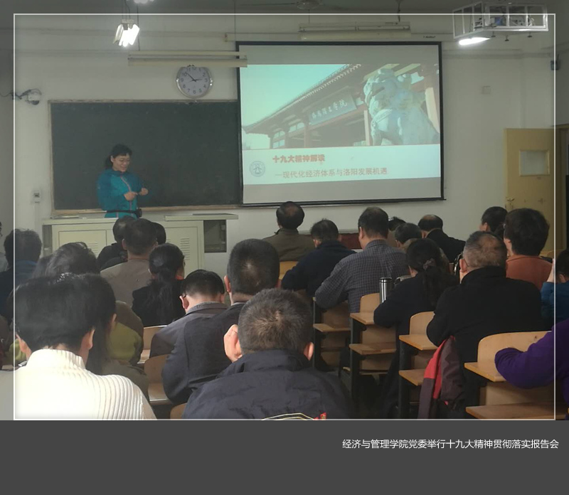 当天下午,经济与管理学院党委就十九大精神贯彻落实举行专场报告会,冯超教授结合洛阳区域经济发展对十九大精神作了精彩解读。经管学院全体教师80余人参加了讲座。报告从新中国的经济纵向发展历程、与国际发达经济体的横向比较视角解读了十九大对我国经济形势的综合判断,介绍了在世界经济复苏乏力、中国经济进入新常态背景下,中国“贯彻新发展理念,建设现代化经济体系”的基本路径,并结合实际对洛阳应抓住的机遇进行了分析。报告结合地方经济,特别是洛阳的经济发展形势,数据详实,论证充分,得到了全院教师的肯定和欢迎。