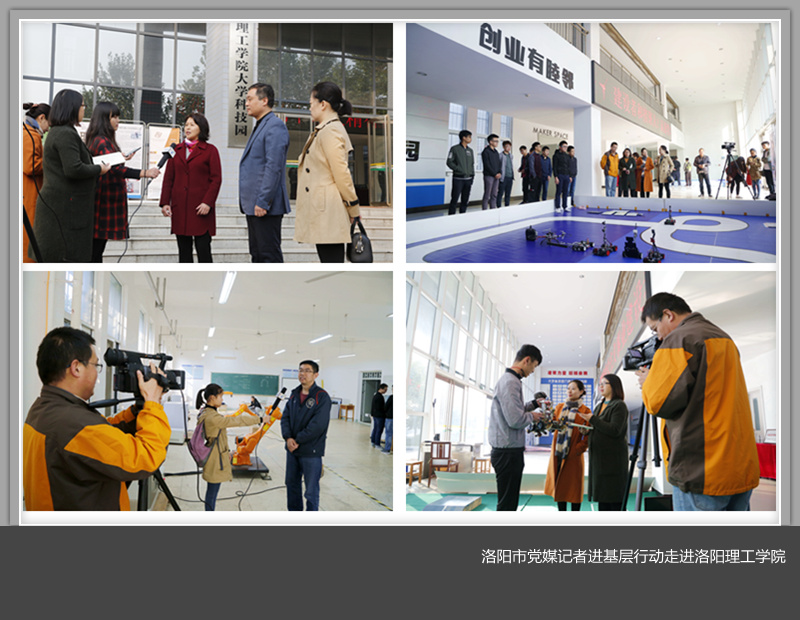 近日,洛阳市新闻工作者协会在全市组织开展了“十九大精神进基层,党媒记者在行动”——全市新闻工作者喜迎第18个中国记者节主题活动。11月6日上午,洛阳日报社、洛阳电视台、洛阳新闻广播等媒体记者一行走进我校,就十九大精神学习贯彻落实及创新创业等内容进行专题采访。采访团一行先后对我校大学生科技创新成果,机器人、智能车大赛获奖作品,机器人学院实验室,大学科技园,洛阳科技大市场进行了实地考察,并分别采访了相关负责人。与我校团委河洛英才班同学一起参与了十九大精神知识竞赛。