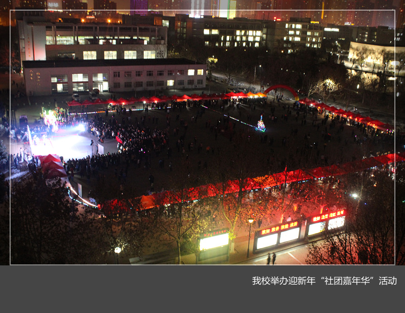 挥别2017,拥抱2018。 2017年12月31日晚,我校迎新年“社团嘉年华”活动在王城校区镜月广场举行。来自全校的59个大学生社团以及数千名学生参加活动。