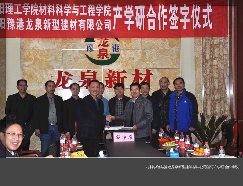 材料学院负责人介绍了学院的基本情况,对无机非金属材料方向人才培养、主要研究领域、服务建材行业发展等做了详细说明,并代表材料学院与豫港龙泉新型建筑材料公司签订了产学研合作协议。双方一致认为,校企双方应该进一步加强技术交流与合作,优势互补,互利共赢。