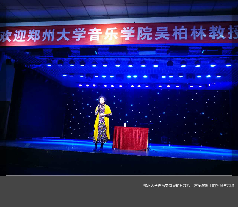 吴柏林教授结合自己的亲身经历和教学经验介绍了当前国内外声乐演唱的发展趋势及河南地区美声唱法的发展概况,从站姿、共鸣腔体等方面详细讲解了声乐演唱中的发声位置与发声技巧。现场还对我校音乐专业的学生进行了声乐演唱方面的示范和指导。现场气氛活跃、互动性强。吴柏林教授的讲座进一步提升了音乐专业师生对声乐演唱的认识和演唱技巧,拓宽了视野,让师生们受益匪浅,收获颇丰。