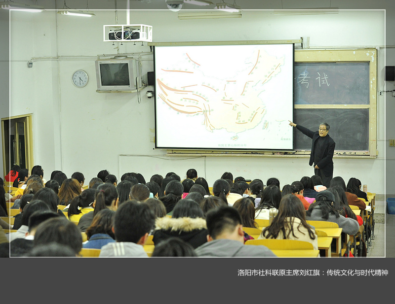 刘红旗以洛阳的地理位置、地形地貌为切入点,结合洛阳历史文化资源,以生动事例具体阐释了中华优秀传统文化是当时的时代精神,而时代精神是对以往传统文化的继承和扬弃。中国特色社会主义文化源自于中华优秀传统文化,熔铸于党领导人民在革命、建设、改革中创造的革命文化和社会主义先进文化,植根于中国特色社会主义伟大实践。最后,他结合自己学习十九大精神中有关文化内容的体会,希望大学生们坚守中华文化立场,增强文化自信,继承与创新优秀传统文化,不断铸就中华文化新辉煌。