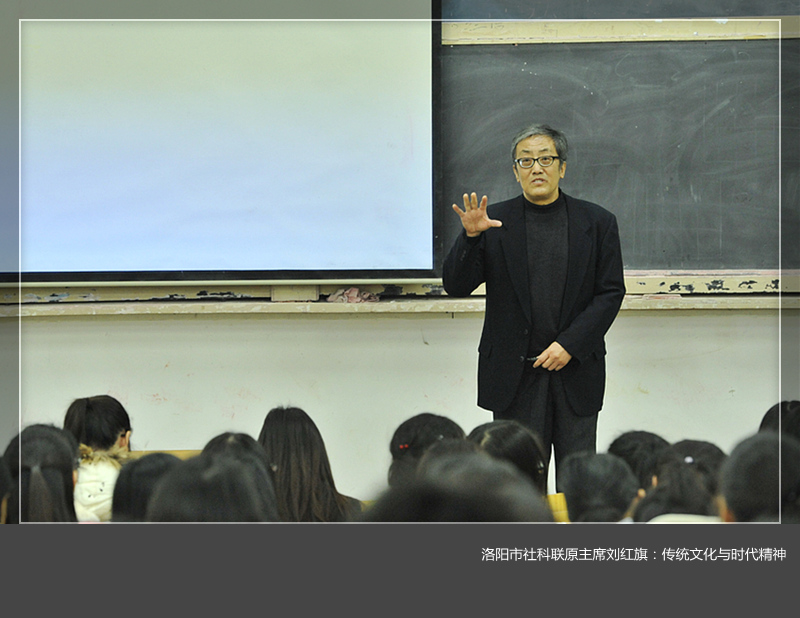 11月16日下午,洛阳市社科联原主席、党组书记刘红旗在开元校区A1教室为人文与社会科学学院汉语言文学专业大二、大三学生作了题为“传统文化与时代精神”的讲座。