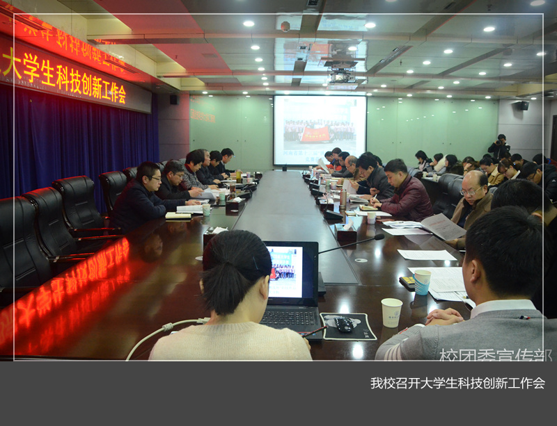 12月22日,我校在王城校区办公楼116会议室召开大学生科技创新工作会。校党委副书记葛玻、学生处、科技处、校团委负责人,各学院学生课外学术科级领导小组成员,挑战杯竞赛指导教师代表参加了会议。