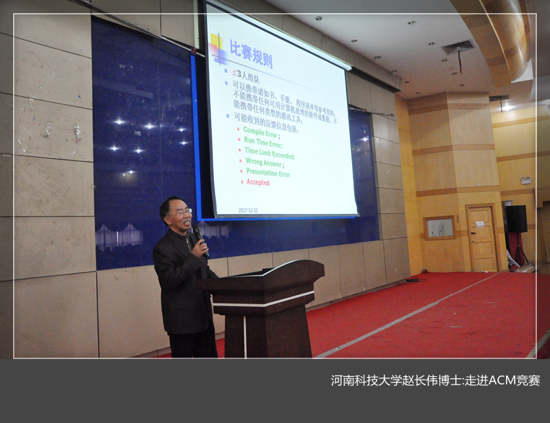 12月22日下午,计算机与信息工程学院邀请河南科技大学计算机系赵长伟博士和华为认证专家张娇老师到我校举办了“走进ACM竞赛”和“华为耕云计划”两场学术讲座。