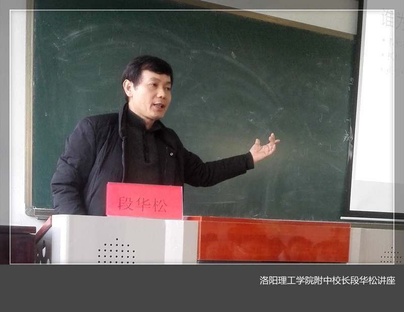 胡玉敏是洛阳市第三中学校长,省特级教师,他以《职业道德,成就未来》为题,以做学生的人格导师和终身学习的老师为重点,内容充实、深入浅出,提炼出只有“师德师能双飞翼”,才能“胸有大爱一点通”的哲理观点;他又以汽车为喻,让学生明白“人生目标就是方向盘,理想、勤奋就如发动机,克制力、敬畏和规矩似刹车”的道理。胡玉敏校长的讲座,接地气、有情怀,信息广,道理透,是其几十年教育经验的结晶。