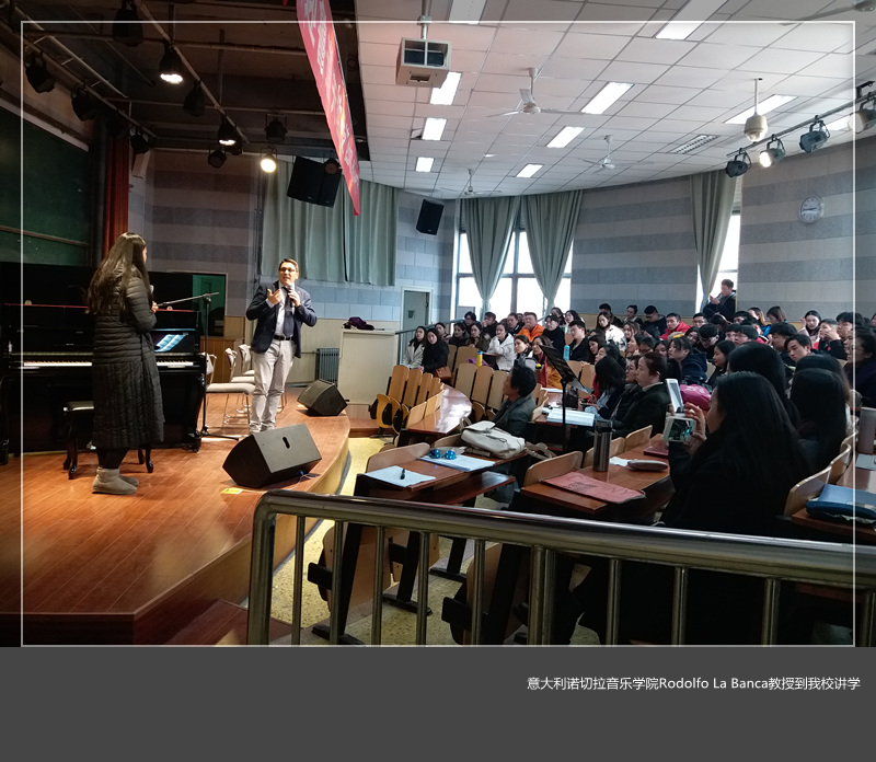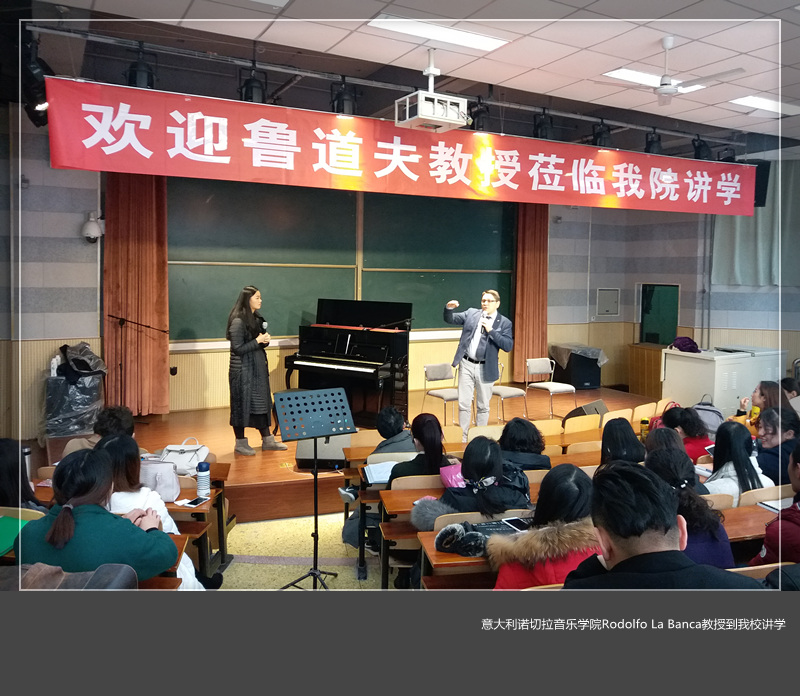 12月25日下午,意大利著名音乐家Rodolfo La Banca教授在师范楼F107为我校音乐表演专业的师生们奉献了题为《纯正意大利美声歌剧的舞台艺术表演》的讲座。