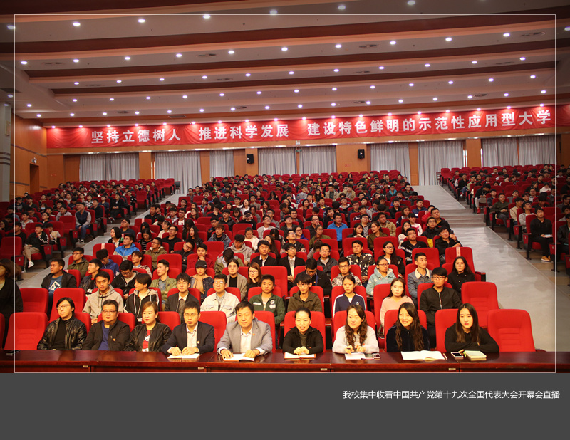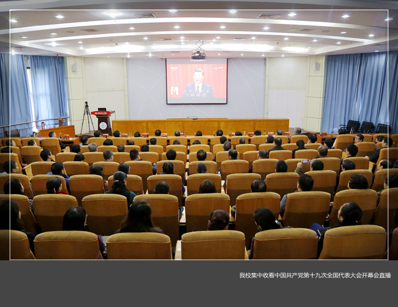 10月18日上午9时,举世瞩目的中国共产党第十九次全国代表大会在北京开幕,我校组织师生集中收看了开幕会盛况直播。学校领导苟义伦、刘国际、陈岩、葛玻、韩振英、曹国杰、王晓峰、张文选、曾涛、庞彩霞,河南省审计厅驻我校审计组组长、省审计厅副巡视员唐军平,副组长、省审计厅社保处副处长赵晓龙、杨兰英及我校机关全体人员在王城校区办公楼报告厅共同观看了直播。