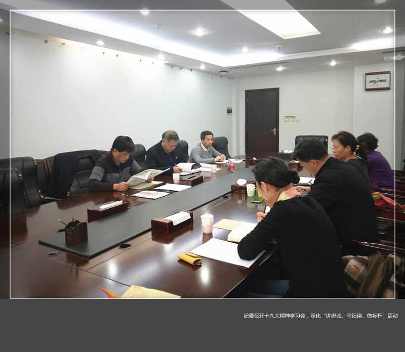 11月16日下午,校纪委在王城校区办公楼216会议室召开十九大精神学习会,进一步深化“讲忠诚、守纪律、做标杆”活动,纪委监察处全体人员参加了学习。会议由纪委书记曹国杰主持。