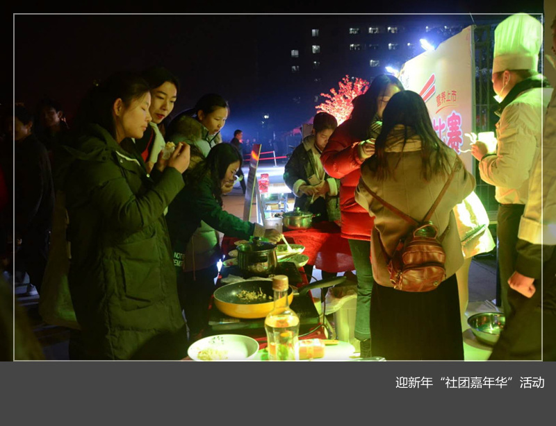 挥别2017,拥抱2018。 2017年12月31日晚,我校迎新年“社团嘉年华”活动在王城校区镜月广场举行。来自全校的59个大学生社团以及数千名学生参加活动。