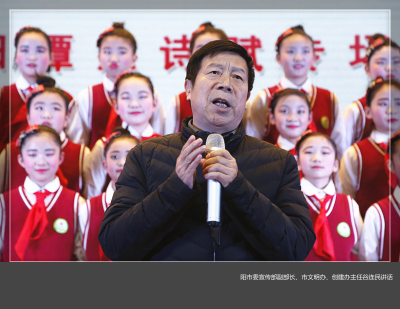 活动结束时,洛阳市委宣传部副部长、市文明办、创建办主任谷连民讲话指出,此次朗诵会是树立“书香洛阳”品牌,彰显洛阳厚重文化的一次特色活动。通过歌颂太平盛世,引领新时代,增强开拓前进的勇气和力量,必将为中华民族的文化自信注入新的活力。他充分肯定了谭杰在近几年诗词创作中所取得的辉煌业绩,并希望广大诗友在党的十九大精神指引下,与时俱进,坚定“文化自信”,为社会主义文化大繁荣大发展,做出新的更大贡献。