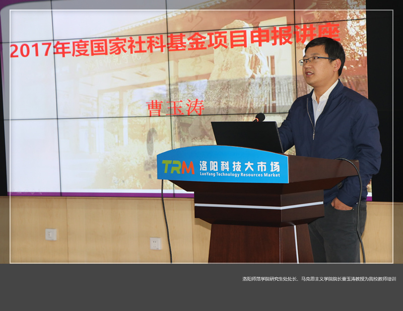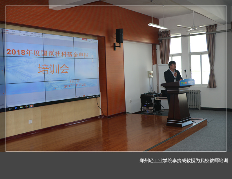 为了提高我校2018年度国家社科基金的申报质量,11月2日下午,科研处邀请郑州轻工业学院李贵成教授、洛阳师范学院研究生处处长、马克思主义学院院长曹玉涛教授两位专家在王城校区科技大市场602会议室举办了培训会。人文社科各教学院部主管科研的副院长、科研秘书、教授、博士及有申请国家社科基金意愿的教师参加了培训会。