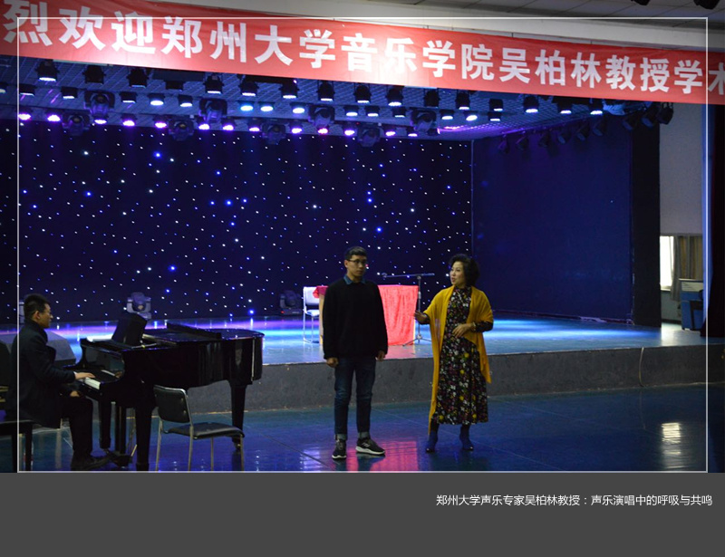 11月6日下午,教育科学与音乐学院特邀郑州大学音乐学院原副院长、声乐专家吴柏林教授在开元校区303舞蹈房为音乐专业师生举办了题为《声乐演唱中的呼吸与共鸣》的学术专题讲座。