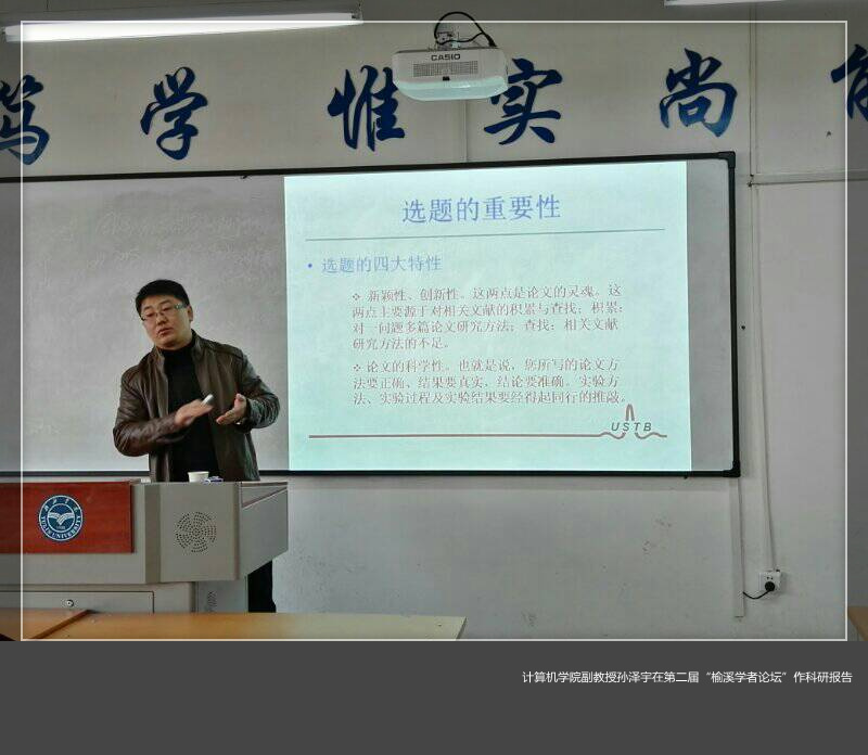 我校计算机学院副教授孙泽宇博士参加了本次会议,并在榆林学院数学科学学院和信息工程学院分别做了主题为“如何撰写高质量SCI论文的几点体会”和“高质量SCI论文撰写过程中的注意事项”两个主题报告。他结合自己的发表SCI论文情况,阐述了SCI论文从层次结构、撰写方法、撰写过程中应注意事项以及如何回复评审专家提出的问题等几个方面深入讲解,并和与会同仁进行了互动交流,反响良好。