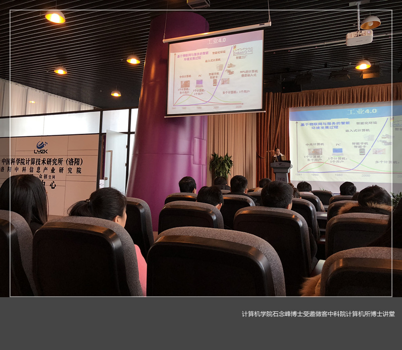 12月21日,在中国科学院计算技术研究所洛阳分所组织的 “博士讲堂”上,我校计算机与信息工程学院教师石念峰博士受邀作了“工业4.0及流程工厂智能化解决方案”的主题演讲。